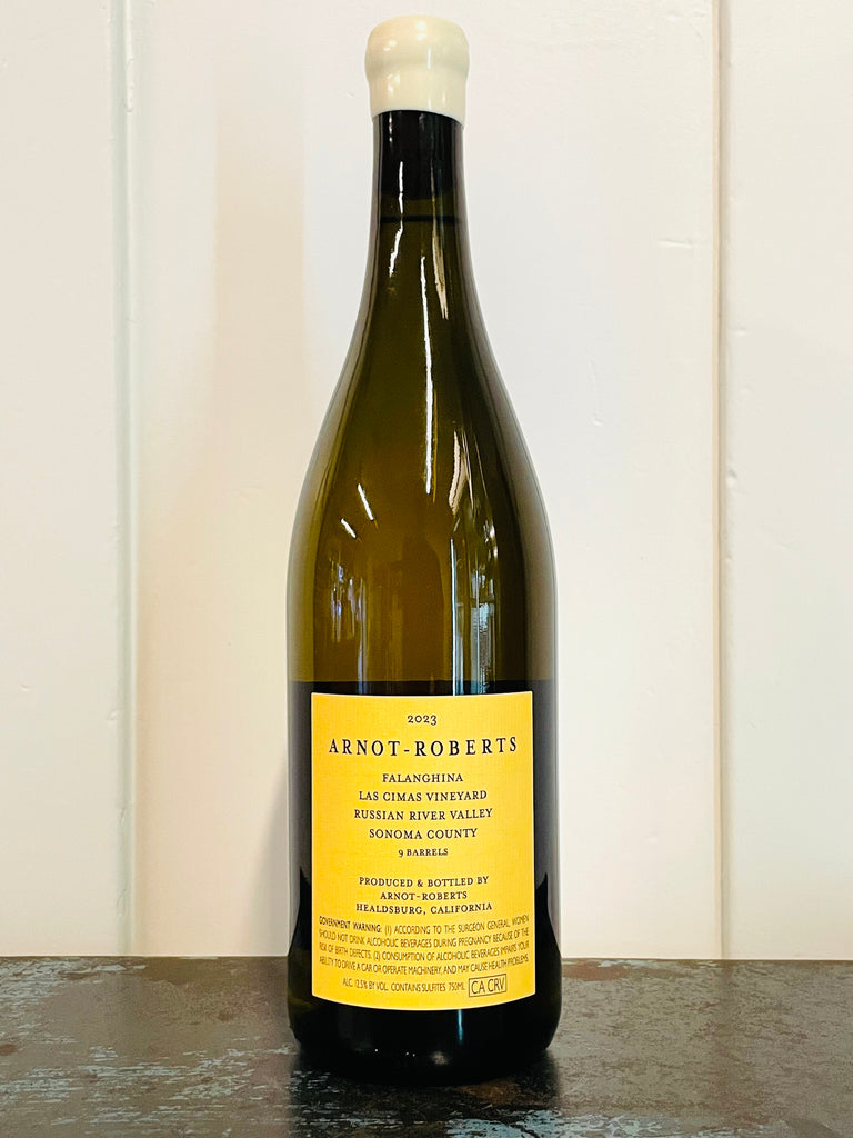 Arnot-Roberts was founded in 2001 by longtime friends Duncan Arnot Meyers and Nathan Lee Roberts. Their namesake winery produces single-vineyard bottlings from California’s North Coast. This Falanghina comes from Las Cimas vineyard, which sits in the hills on the western edge of the Russian River Valley. At roughly 800 ft elevation, the vineyard is planted to an impressive assortment of grape varieties on its steep sloping hillsides. The soils are sandy clay loam on fractured sandstone, dotted with quartz and schist. The vines are exposed to ample sun, with cooling breezes from the Russian River valley and from the Pacific Ocean just 15 miles to the West.