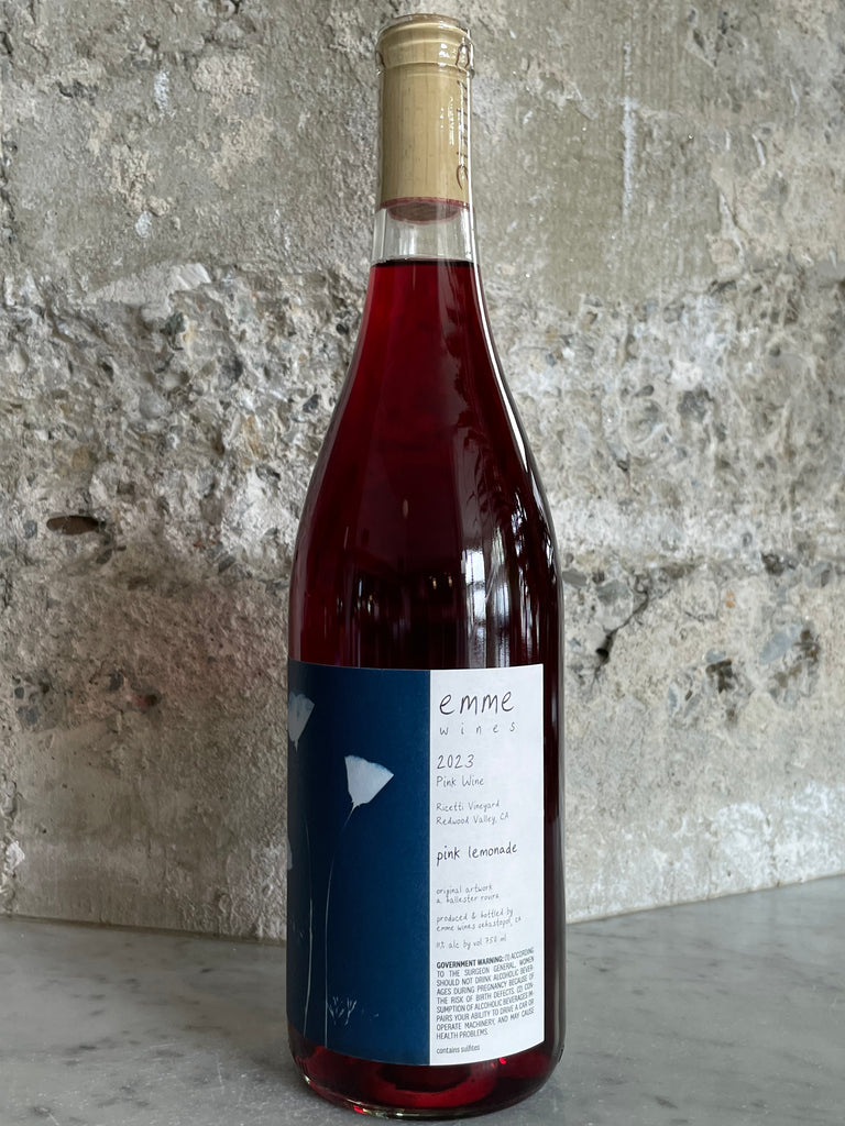 ‘Pink Lemonade’ looks like electric pink lemonade during fermentation, and was named as such. The 2023 pink lemonade is, as always, a blend of all the varieties planted at Ricetti Vineyard. The blend is composed of two separate picks. The first of these picks is the earlier-ripening varieties at Ricetti – Abouriou and Zinfandel, which contribute tannin and color, as well as some Colombard for acidity. The second pick, three weeks later, comprises the later-ripening varieties at Ricetti – Valdiguié, Carignan and Colombard. After 5 days whole cluster in tank, the partially fermented fruit was pressed to stainless steel. The wine was moved to neutral barriques to age for 5 months. In late March, these two field blend components were racked out of their barriques and blended just before bottling, to create one comprehensive field blend.